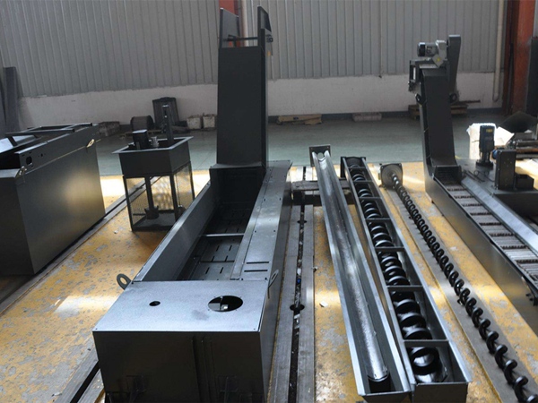 螺旋排屑机是指用于排除碎屑的工业用机器设备。 螺旋排屑机主要特点: 1、可制做成水平或带提升高度。可单机或多台组合使用。结构简单,安装灵活。 2、一般水平排屑可采用无轴螺旋体,带提升排屑宜采用带轴螺旋片,并增大排屑口口径以增加推屑强度,利于切屑排出。 3、不适于排除长条状及纤维状切屑。螺旋排屑机体积小、适合狭窄空间之除屑使用。多种尺寸与长度选择,可弹性配合各式机床。除屑螺杆强度高,传动结构坚固。安装拆卸方便,维护容易。