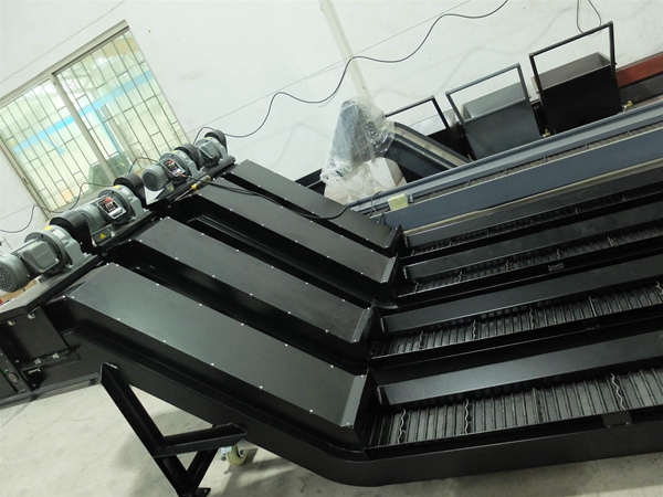 3、刮板排屑机在从水箱中刮排切屑时,可选加时间继电器使减速电机间断工作以便控水,可在刮板排屑机底层选加磁铁以加速铁屑沉淀,还可选加制冷机控制冷却液温度。