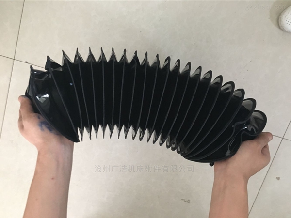 拉伸长度大时可以在每个折中加上金属环,提高护罩的稳定性。连接或固定端通常使用金属法兰盘,也可以选择套箍式。