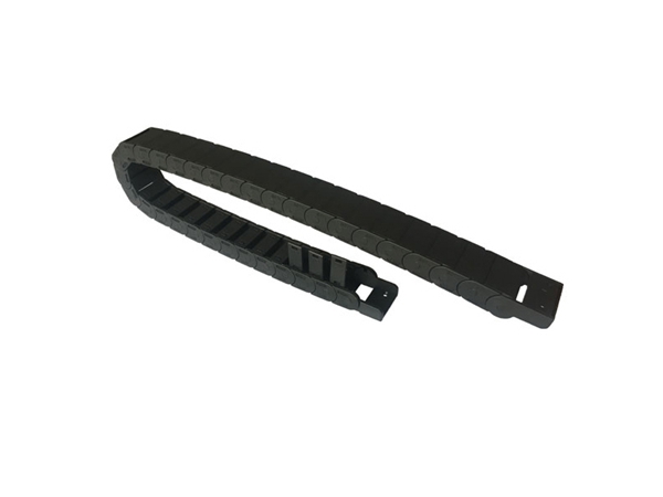 拖链外形似坦克链,由众多单元链节组成,链节之间转动自如。相同系列的拖链内高、外高、节距相同,拖链内高、弯曲半径R可有不同的选择。单元链节由左右链板和上下盖板组成,拖链每节都能打开,装拆方便,不必穿线,打开盖板后即可把电缆、油管、气管等放入拖链内。