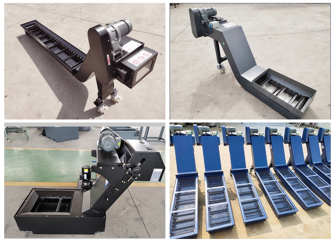 3、刮板排屑机在从水箱中刮排切屑时,可选加时间继电器使减速电机间断工作以便控水,可在刮板排屑机底层选加磁铁以加速铁屑沉淀,还可选加制冷机控制冷却液温度。